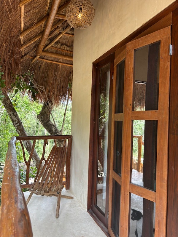 Esta construída en Chukum y madera con detalles muy bonitos para una hermosa vista y relajación en tu estadía en la selva maya