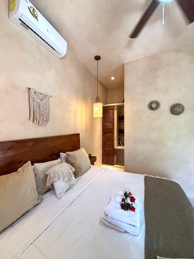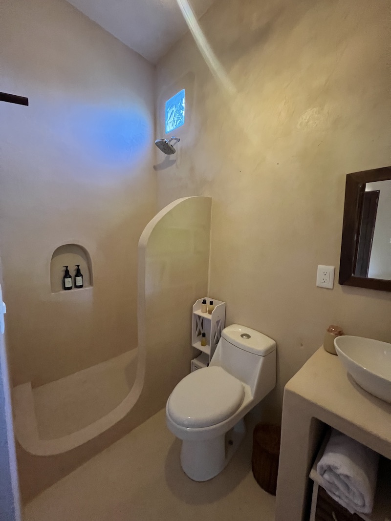 Cabaña Cielo es la nueva cabaña de Tzunum y la más completa, porque pensamos en huéspedes que desean estadías más largas, con más comodidades, por eso esta cabaña ya viene equipada y tiene Cocina individual y Cuarto de Lavado.